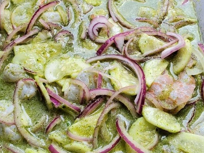 Camarones curtido con limón cebolla pepino y nuestras finas especies