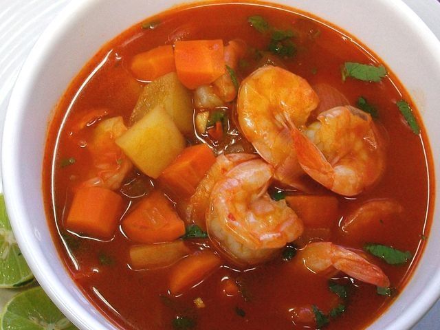 Delicioso caldito de camarón, calientito preparado con jitomate cebolla cilantro catsup chile y limón (caldo )