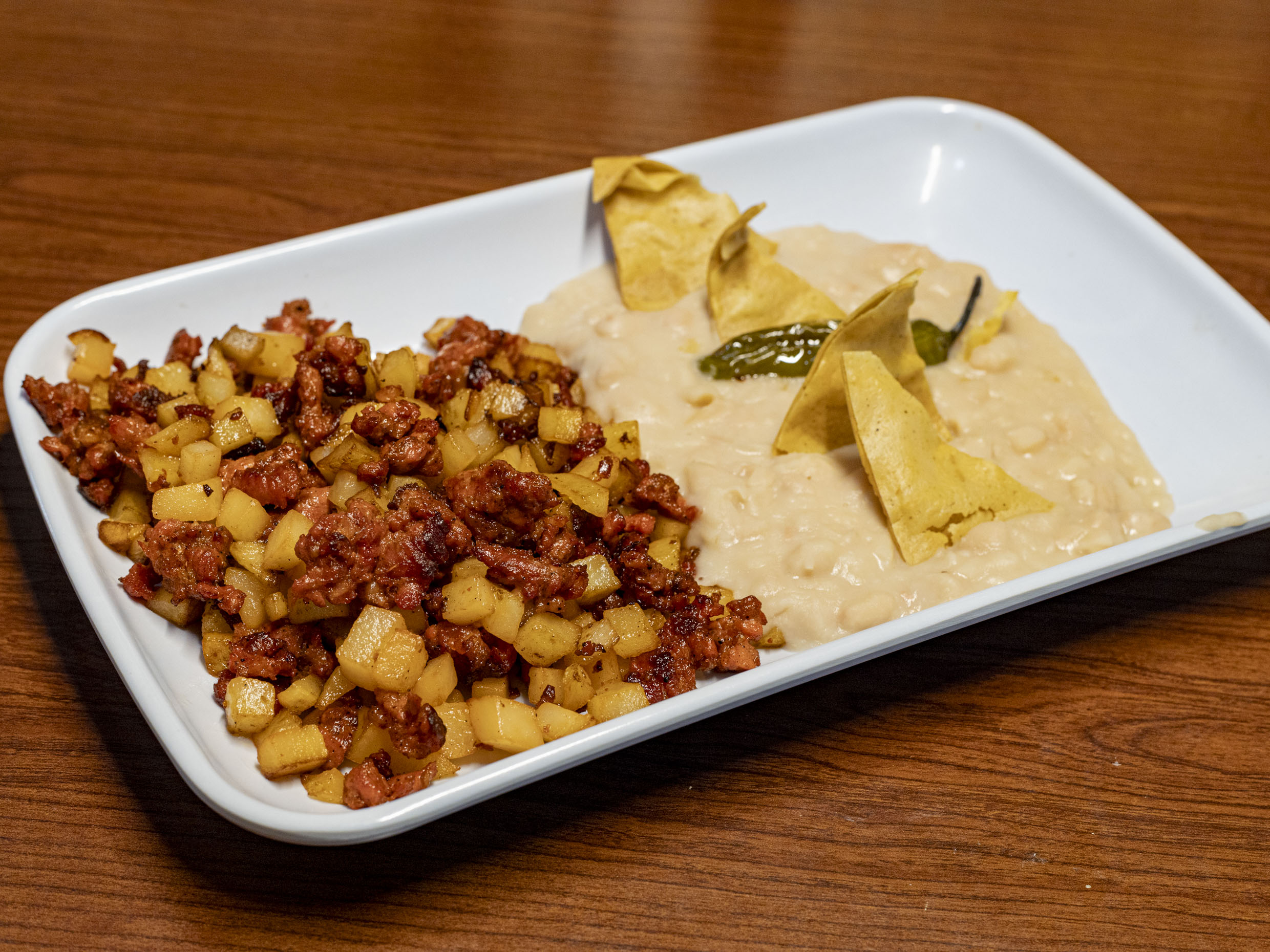 Papas con chorizo con frijoles