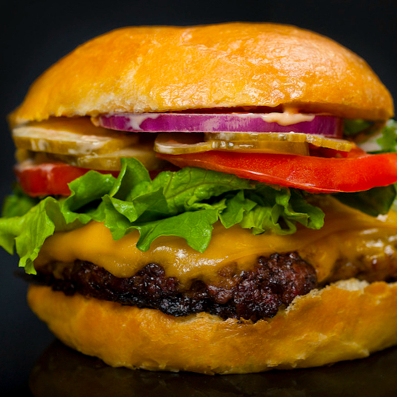 Queso amarillo, jamón, aguacate, tocino, champiñón y chorizo en una deliciosa hamburguesa.