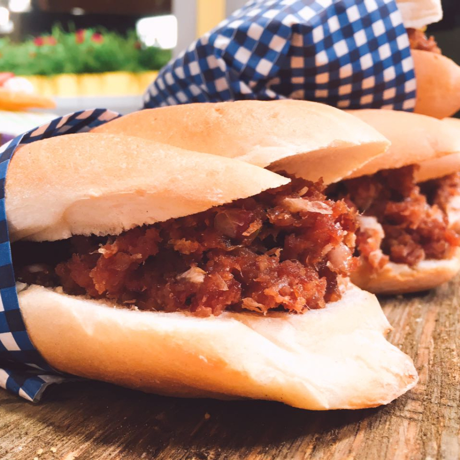 Chicharrón crujiente en lonche, preparado con ingredientes frescos para un sabor auténtico.
