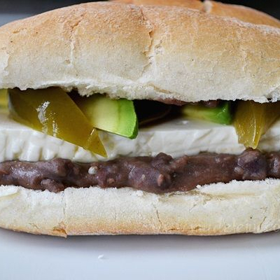 Sabroso lonche de frijol y queso, una delicia en cada mordida.