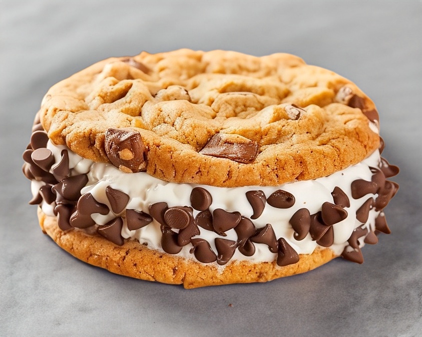 Galleta con helado y chispas de chocolate