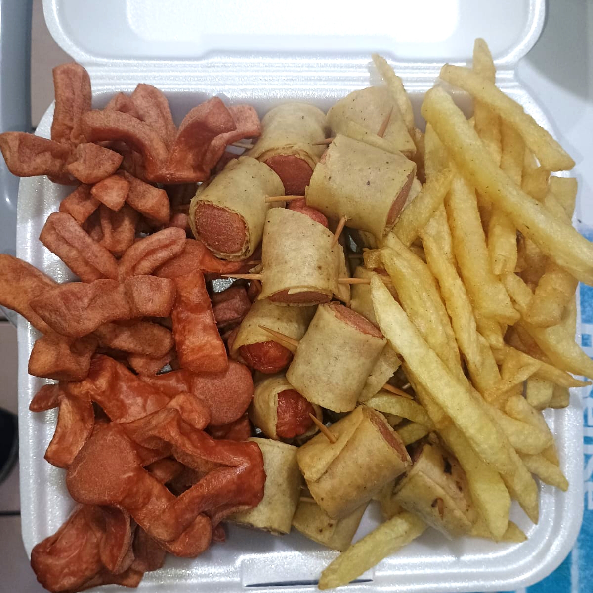 contenedor con salchipulpo , salchitaco y papa a la francesa ( 580 gr pesado en crudo)