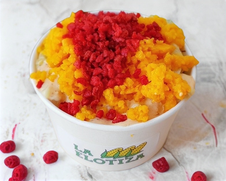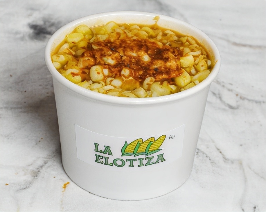 Elote blanco desgranado, crema o mayonesa y queso fresco, en vaso de 8 onzas con aproximadamente (230 gr) de contenido total, el clásico de afuera del templo en la comodidad de tu hogar.