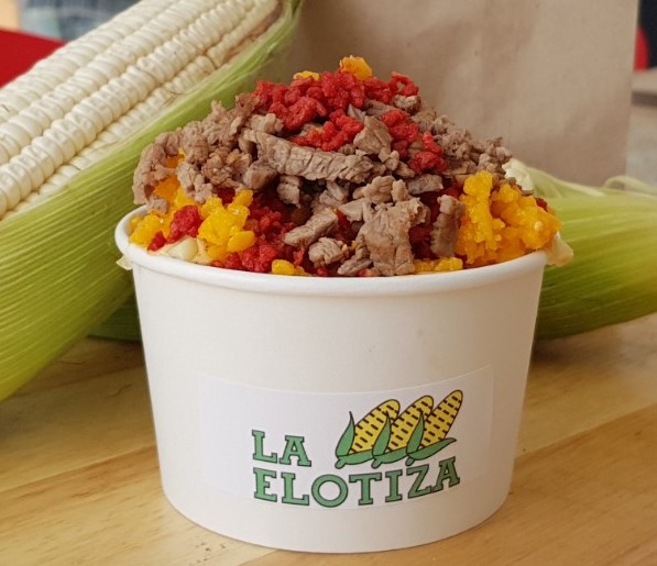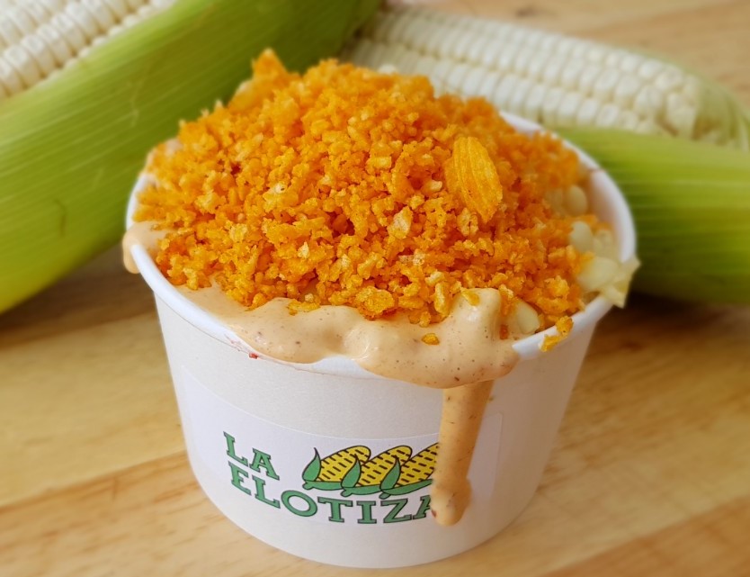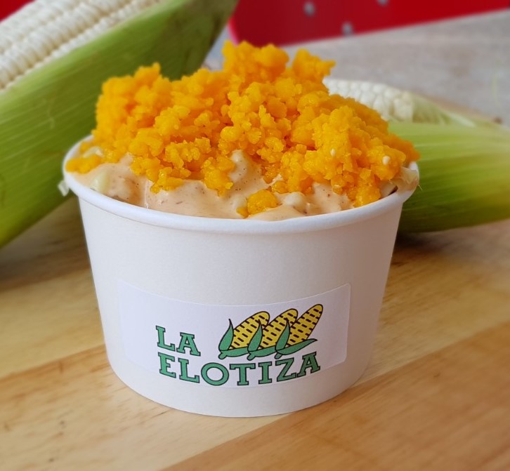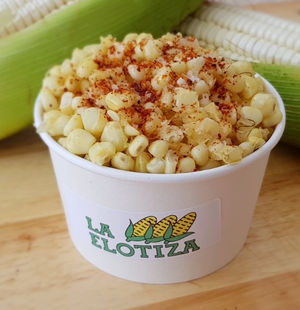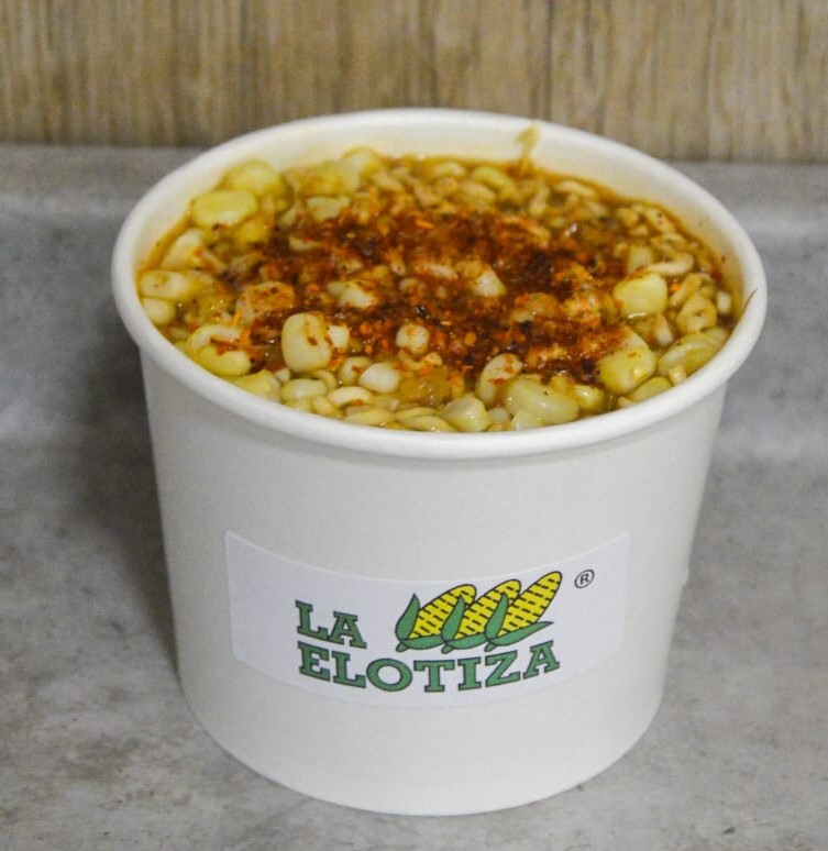 Elote blanco, desgranado y calientito en vaso de 16 onzas con aproximadamente 400 gramos de contenido.