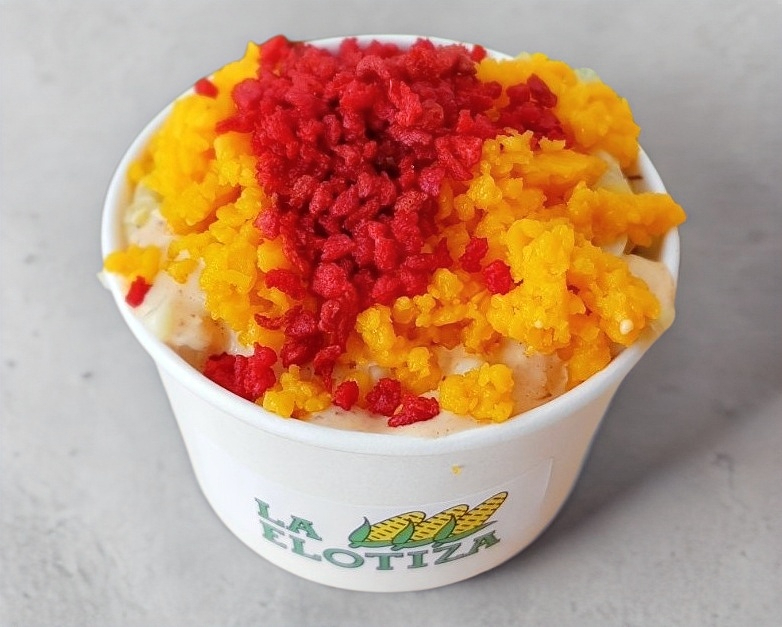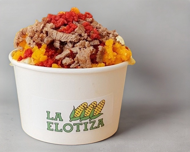 Elotitos ricos con Maruchan, limón, jugo Maggi, salsa Valentina en vaso de 16 onzas con aproximadamente 470 gr de contenido.