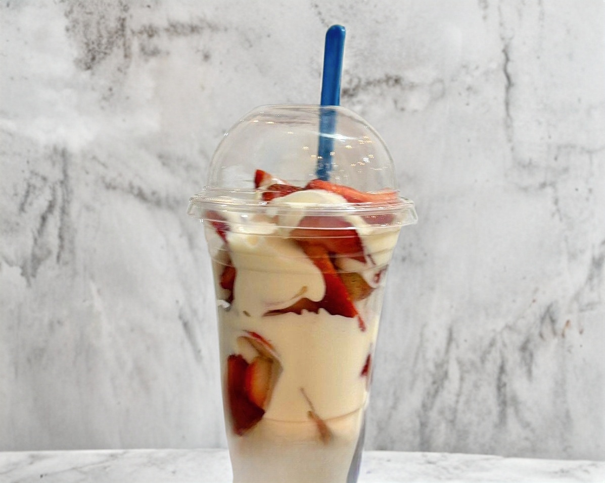 Fresas con crema (no es crema chantilly) Vaso de 12 oz