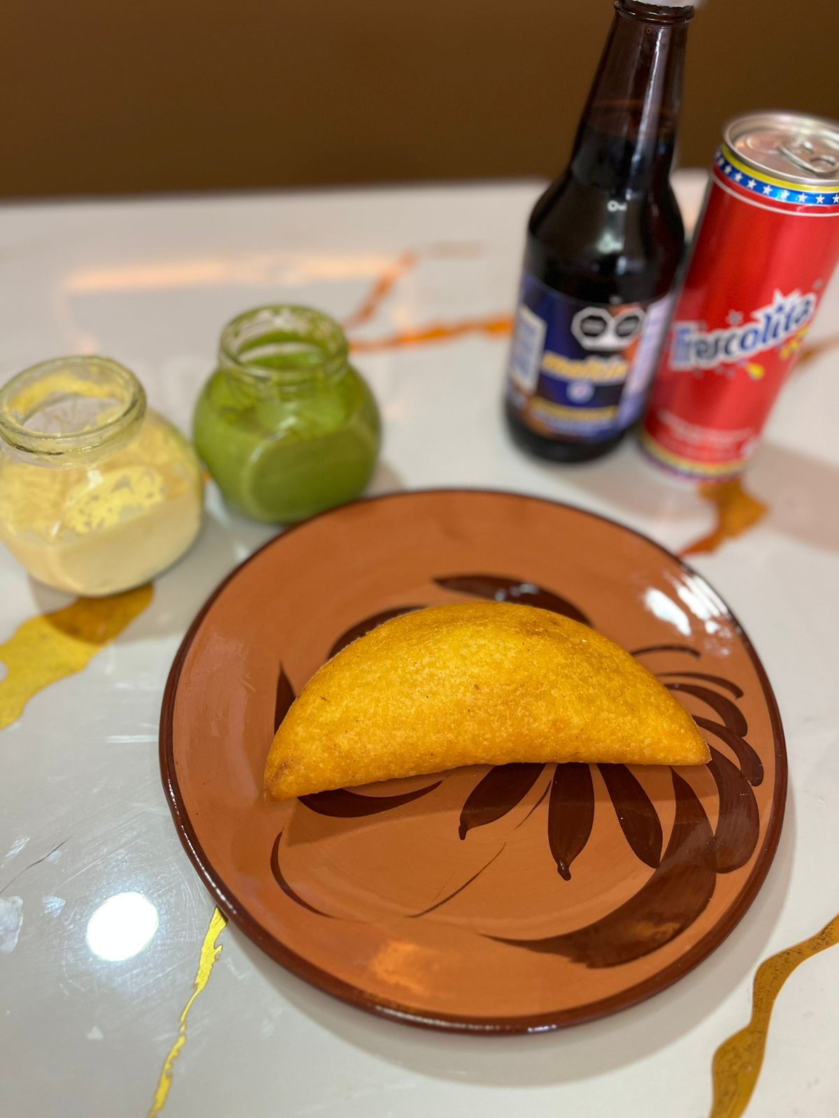 Empanada crujiente rellena con queso de mano fresco, suave y derretido.