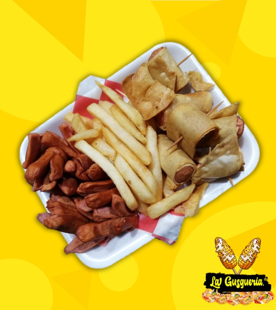 Salchitacos fritos, aderezados con la salsas de tu preferencia