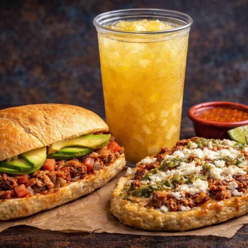 Lonches*1 + Aguas Fresca del día*1 + Pellizcada queso con carne a elegir*1
