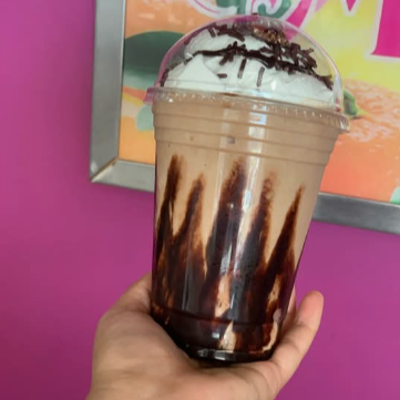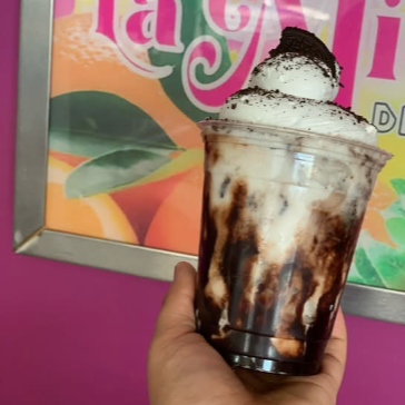 Bebida fría, mezclada con hielo y Oreo, servida con una textura espumosa. Ideal para refrescarse en días calurosos.