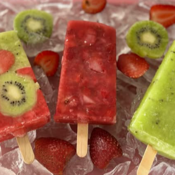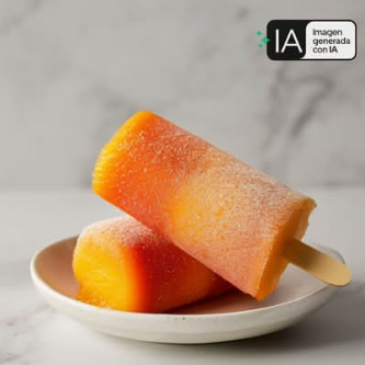 Paleta sabor a naranja y fresa con gomitas de fruta.