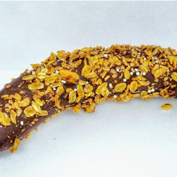 Paleta de Nutella, queso Philadelphia con fresa y plátano. Contiene nueces.
