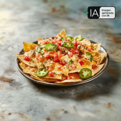 Nachos con queso y jalapeños.