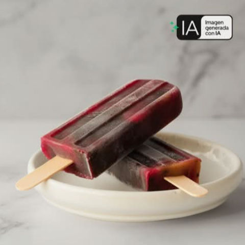 Paleta con explosión de sabores de frutos rojos.