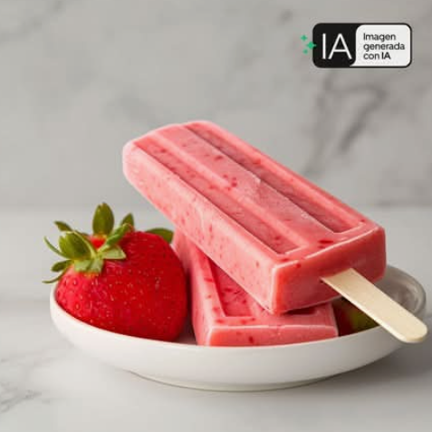 Paleta de fresa con base de crema de biónico.