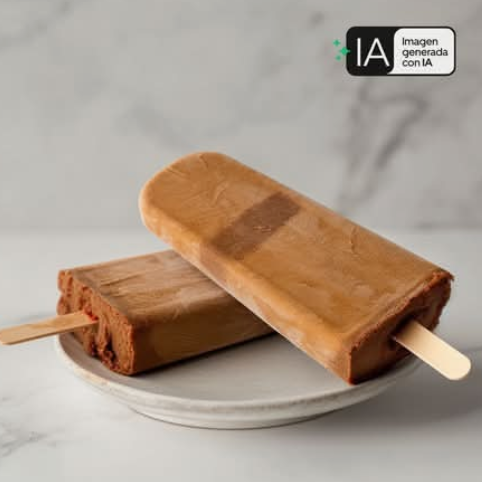 Paleta de vainilla cubierta y rellena de chocolate.