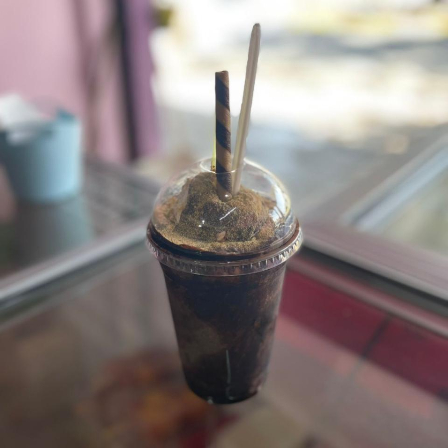 Bebida fría a base de café y galleta mezclada con hielo y toque dulce
