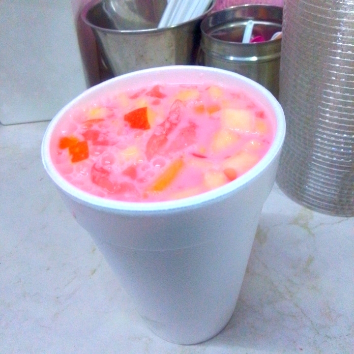 Gran porción de agua fresca de sabor natural elaborada con frutas de temporada