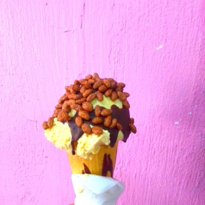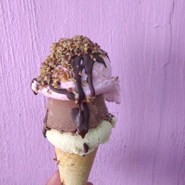 Triple porción de sabor en cono de galleta artesanal ideal para compartir o para los amantes del helado