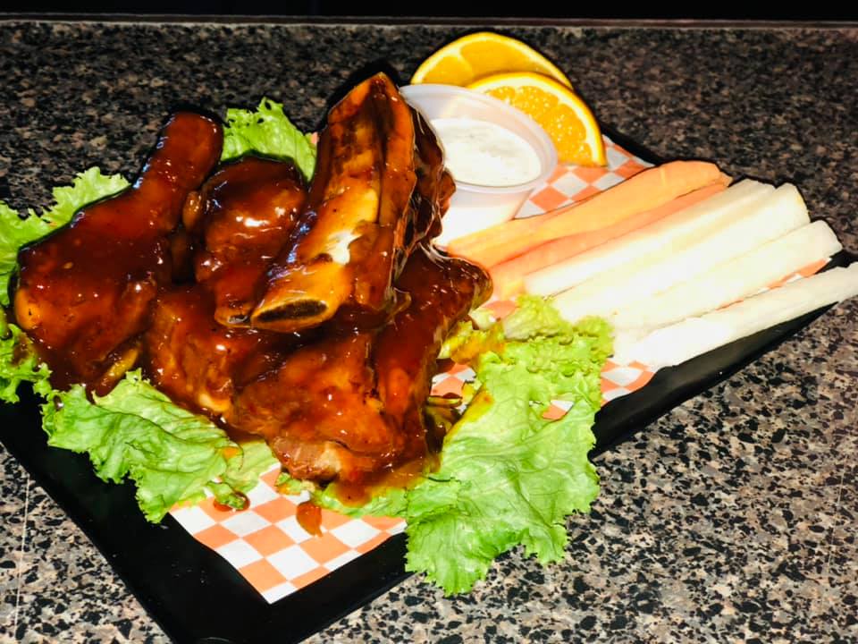 Exquisitas Costillas de Cerdo preparadas con la receta especial de la casa, con un Deep de Aderezo Ranch