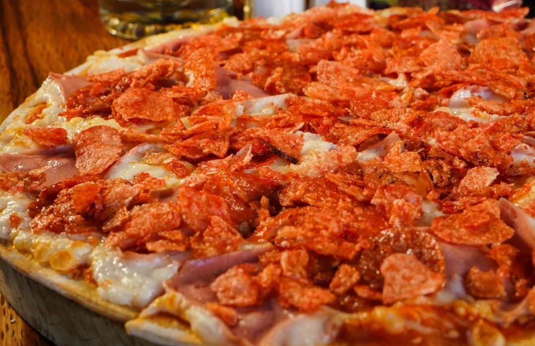 Jamón, pepperoni y Chips fuego.