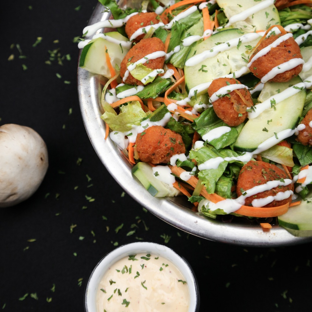 Lechuga, apio, pepino, zanahoria, boneless Buffalo y Ranch.