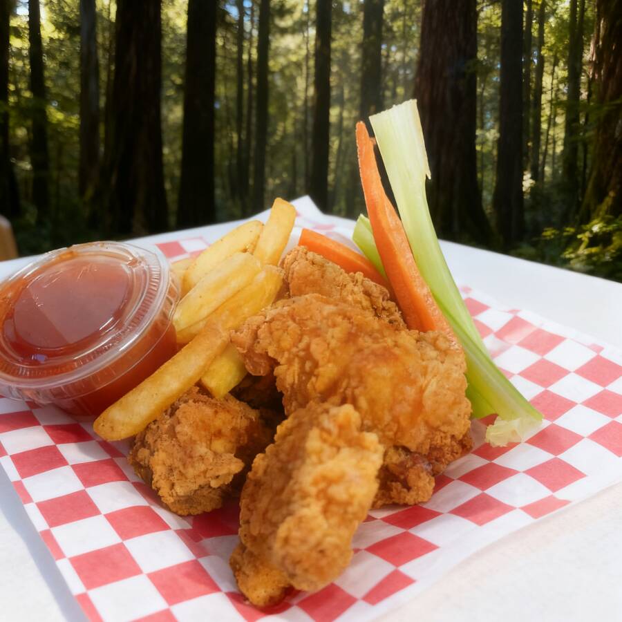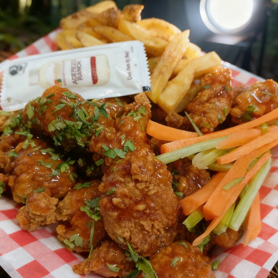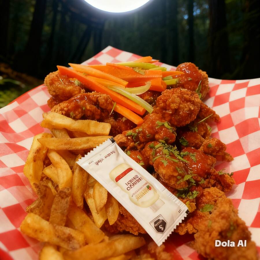 Boneless fritos con salsa a elección 60 gms de papa francesa acompañados de zanahoria/apio y ranch