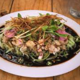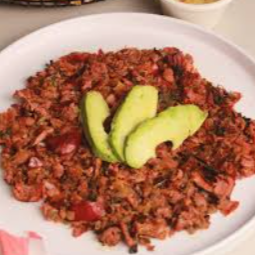 Incluye tostadas, cátsup (salsa de tomate) y salsa picante. Aguachile (ingredientes: limón, chile chiltepín y camarón limpio. Con el tiempo se le agregó pepino y cebolla morada, acompañado con Tostitos).