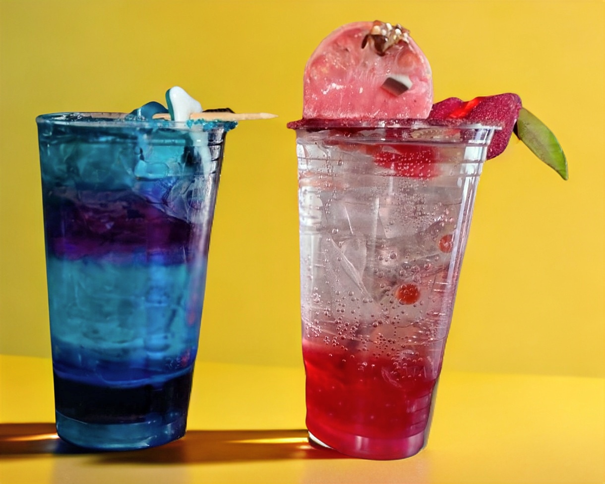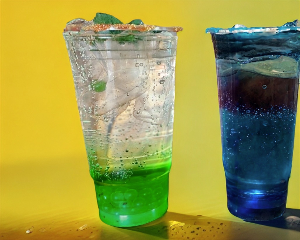 Refrescante Litro con Perlas explosivas, jarabe mora azul, gomitas y Ron