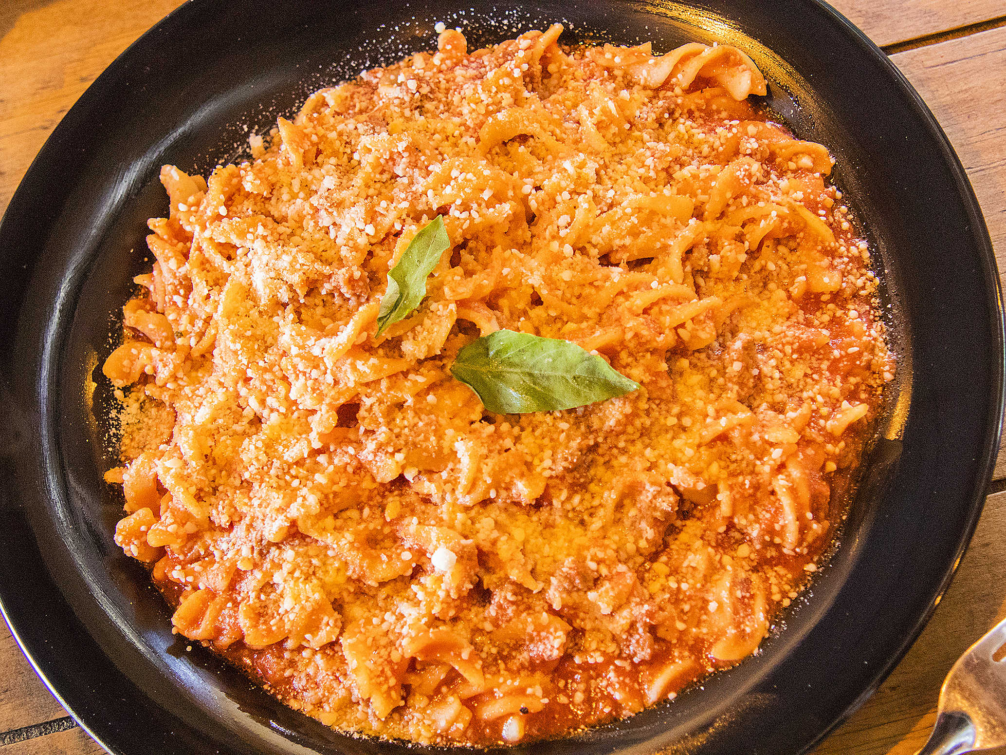 Fetuccini cubierta con nuestra deliciosa salsa pomodoro con carne molida.