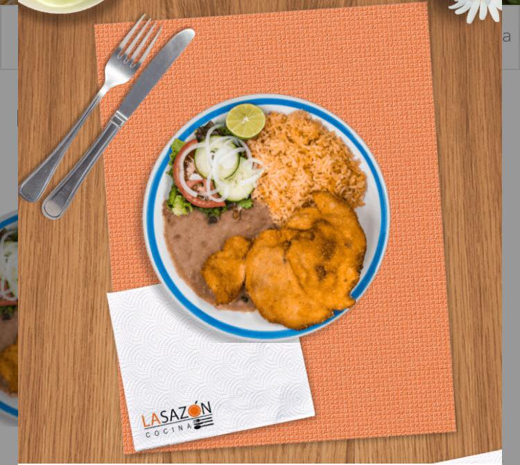 acompañada de esalada, arroz y frijoles