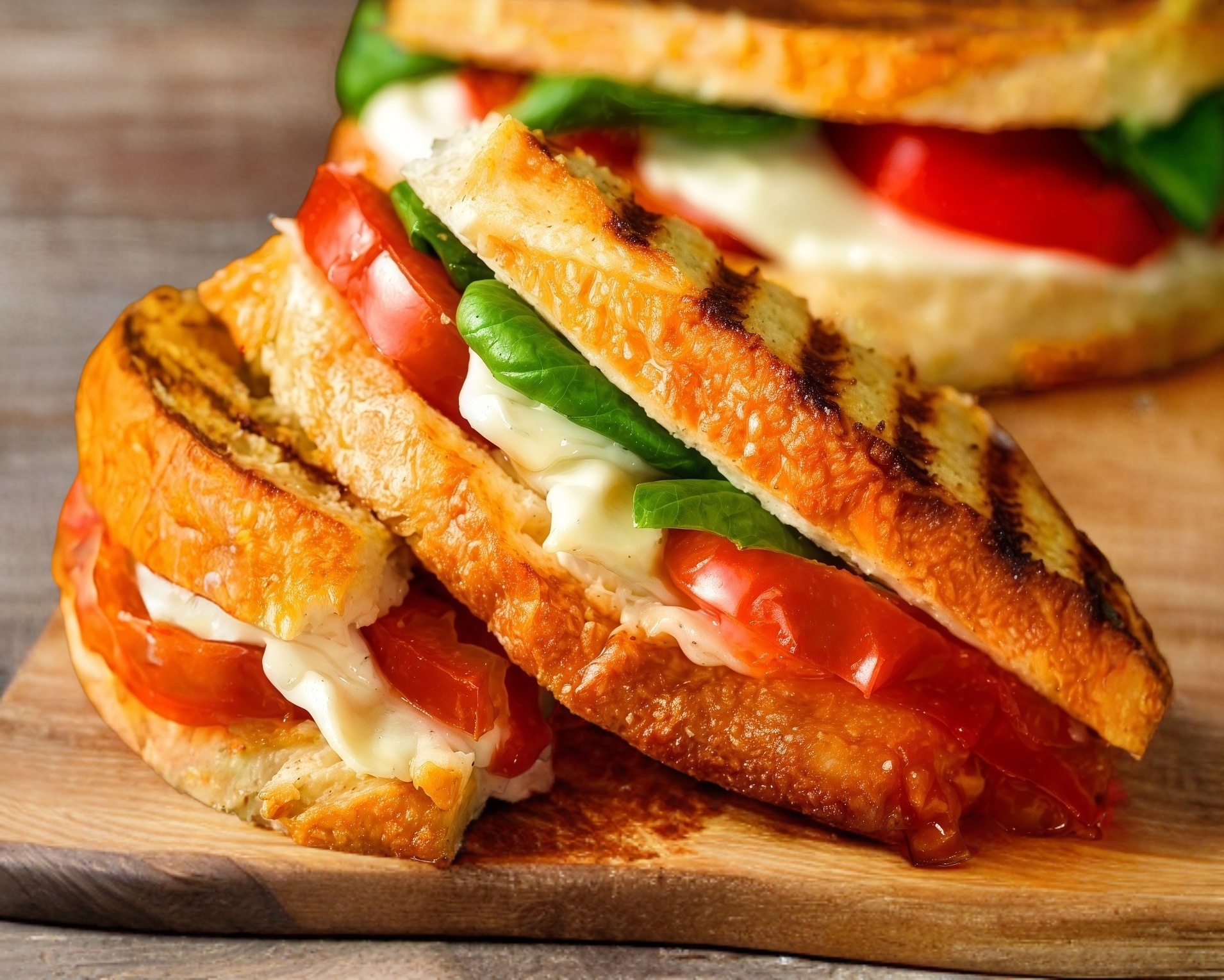 2 piezas de pan bimbo con queso panela, pierna de cerdo y jamón. Acompañado de crema, jitomate, cebolla, lechuga y jalapeños.