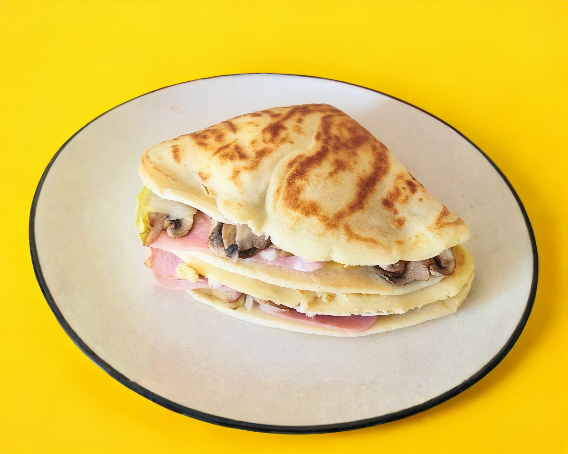 Crepa Salada Queso, Jamon, Champiñones, Jalapeños