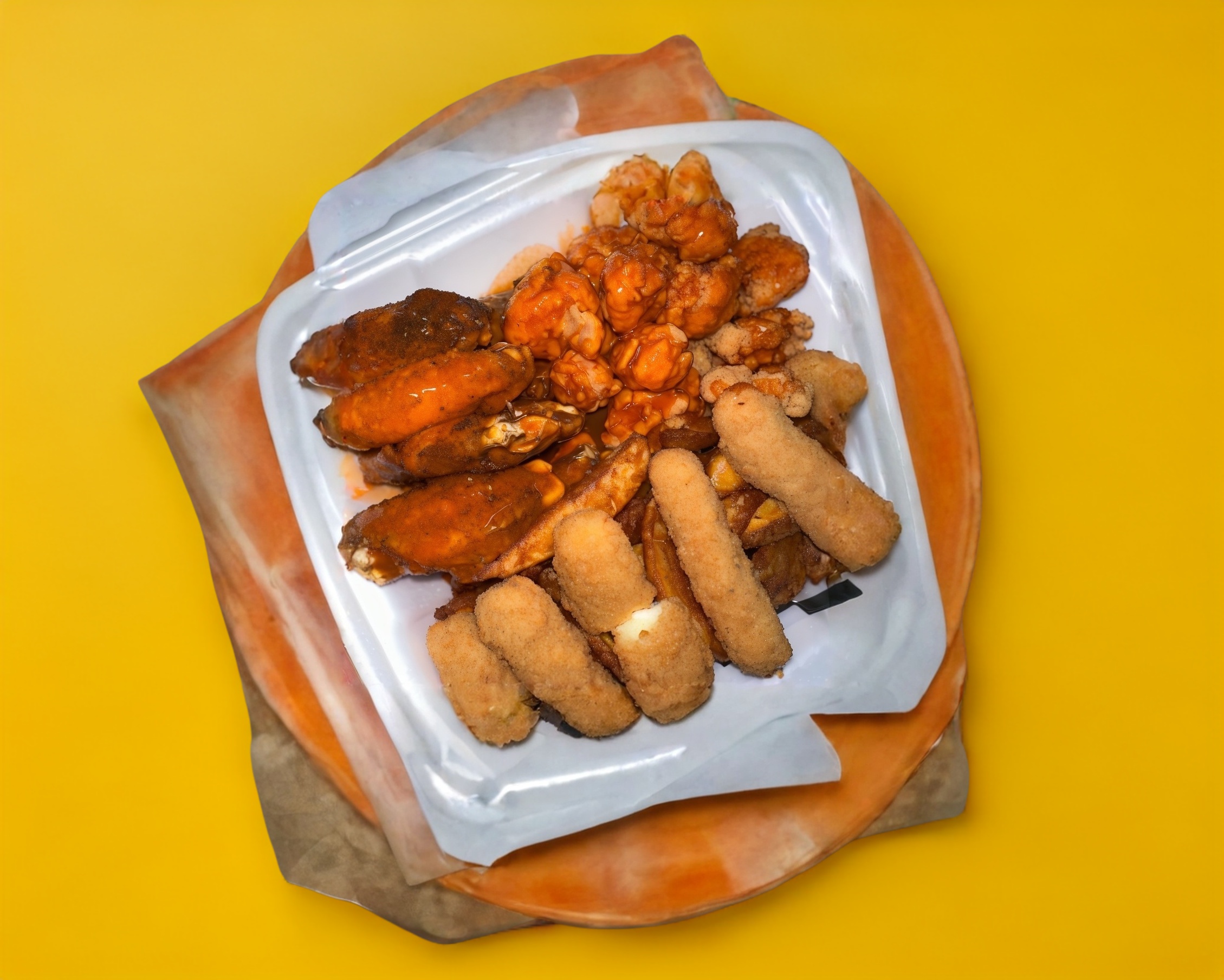 Boneless*1 + Alitas 8pzas*1 + Dedos de Queso*1 + Papas Gajo*1