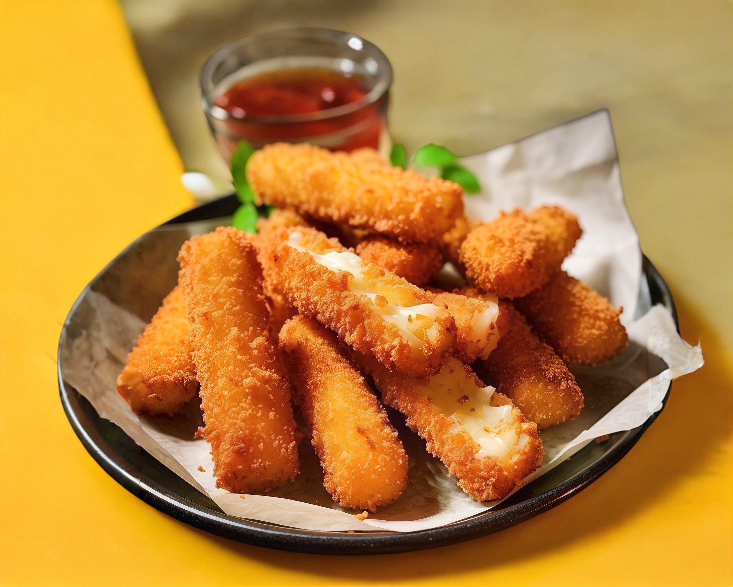 Deliciosas tiras de queso crujientes acompañados de la salsa o aderezo de tu eleccion (6pzas)