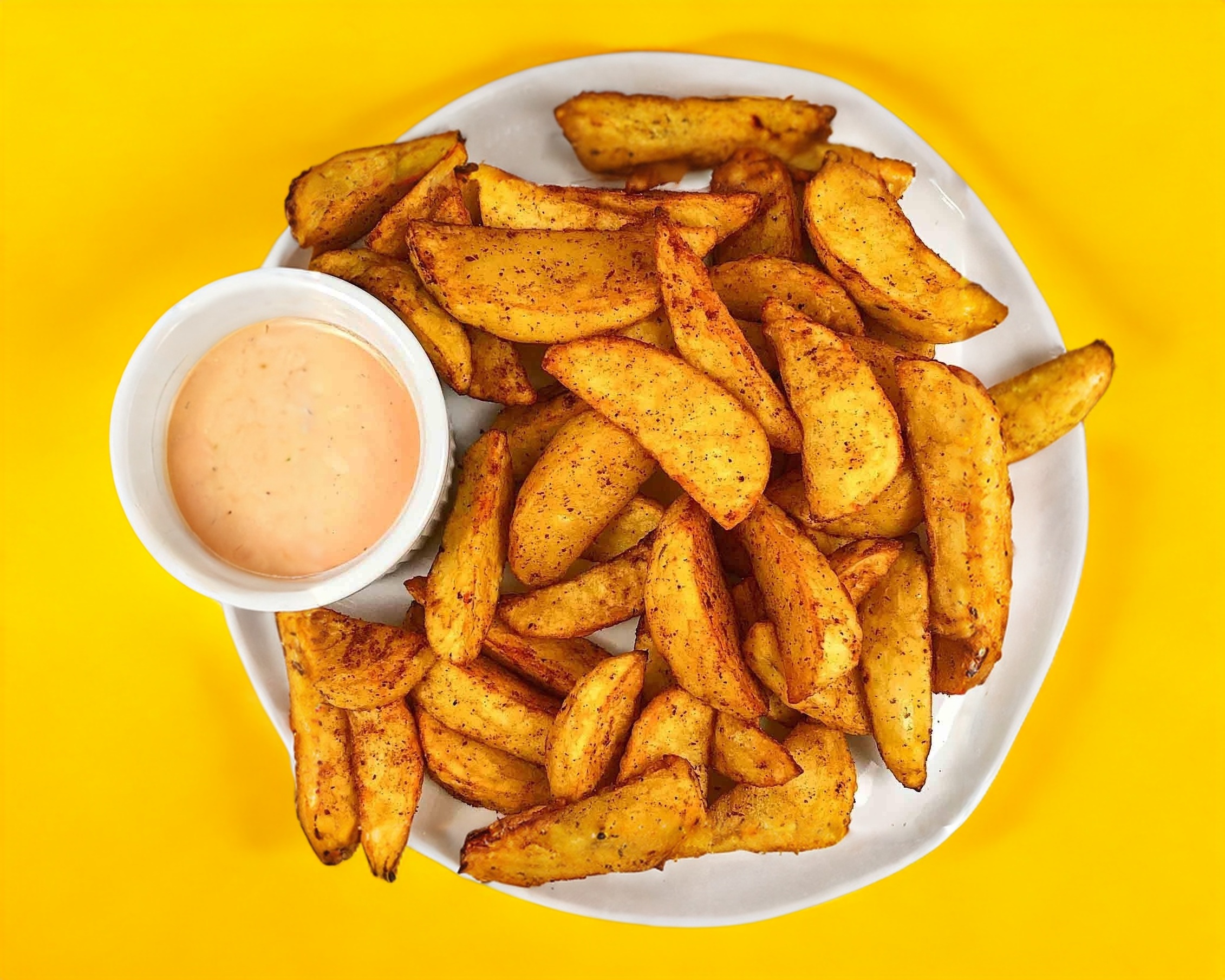 Deliciosos gajos de papa frita acompañados del sabor de tu eleccion (250grs)