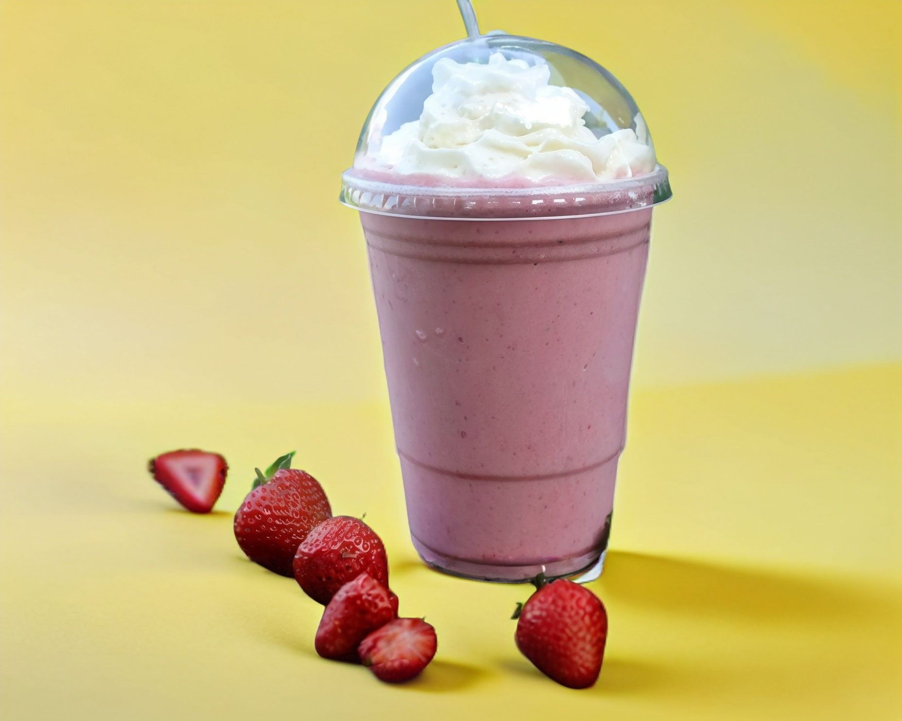 Refrescante malteada sabor fresa decorada con chantiyin y chispas sabor fresa (370ml)