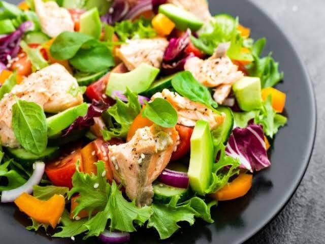 Atún, lechugas, zanahoria, espinacas, arugula, jitomate cherry, pepino, cebolla, bañado enn aceite de ajonjoli