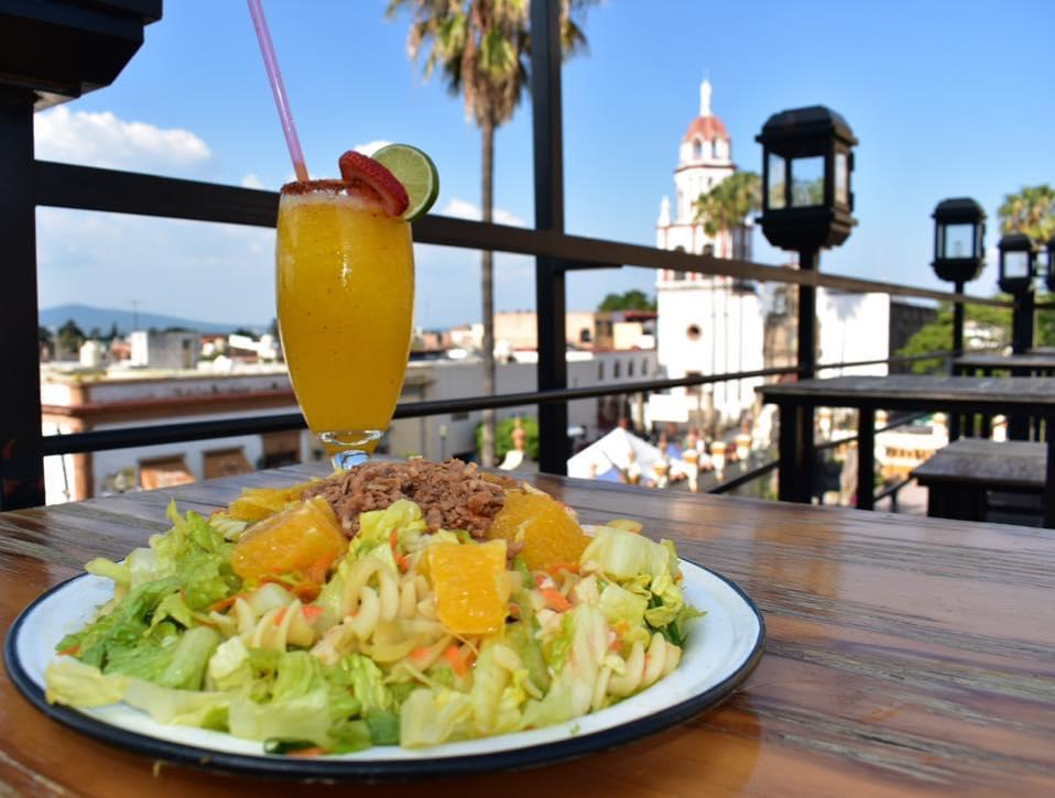 Mezcla de lechugas, espinaca, pepino, apio, jitomate, semillas de girasol y queso panela con aderezo de limón.
