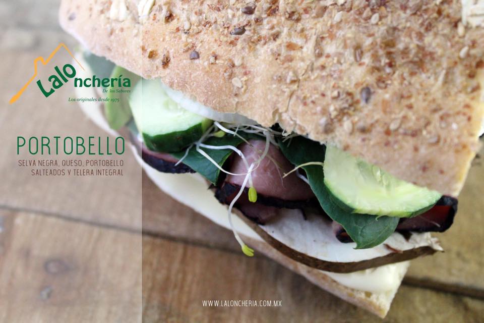 Vegetales Frescos: Lechuga, Jitomate, Cebolla, Aguacate, Y Chiles Jalapeños. Aderezos: Mayonesa y Mostaza. Selva Negra, Queso Portobello Salteados. En Telera Integral.