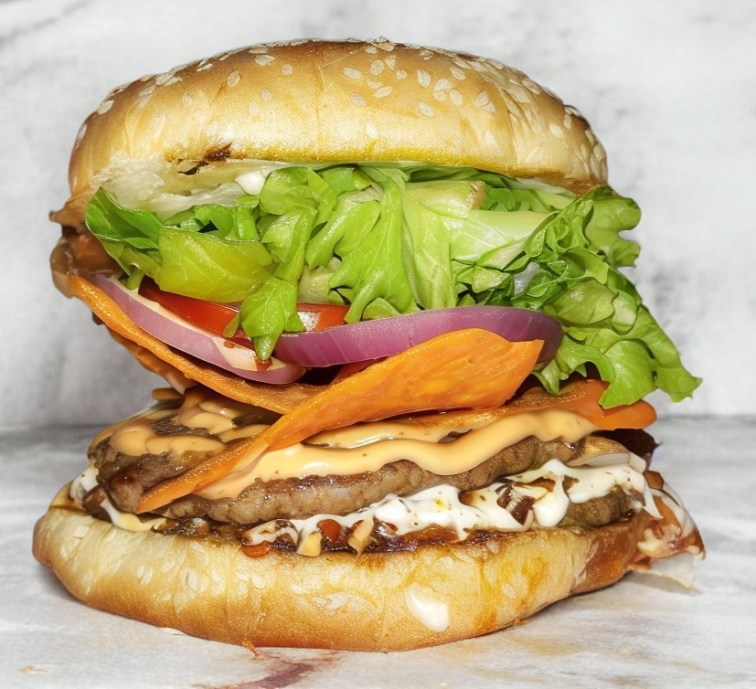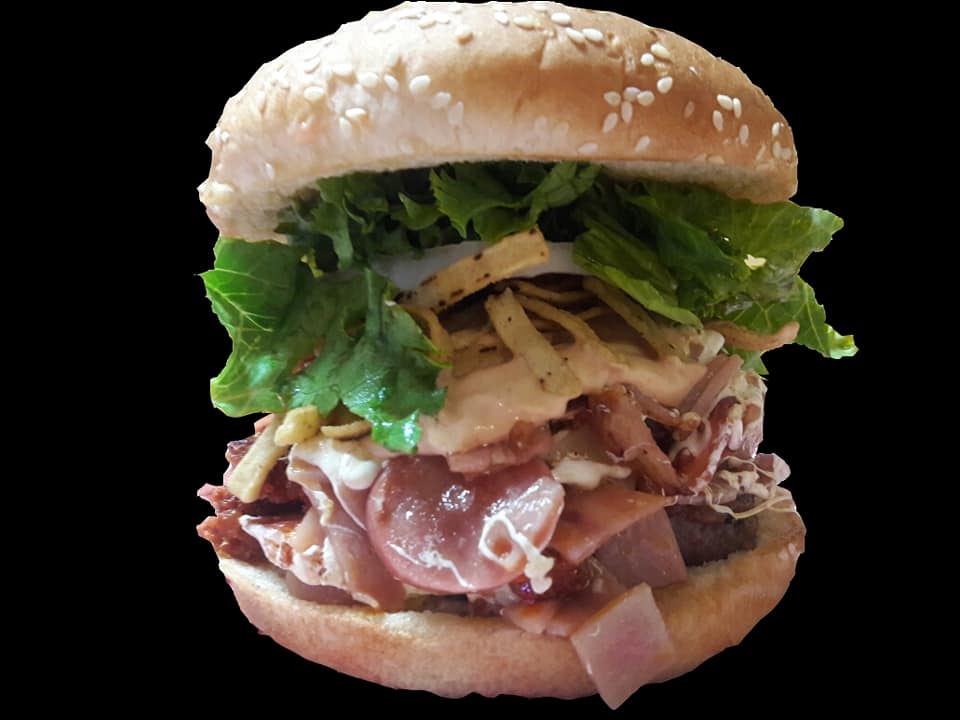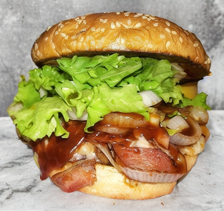 Carne de res, cebolla, tocino, bbq texana y queso fundido.