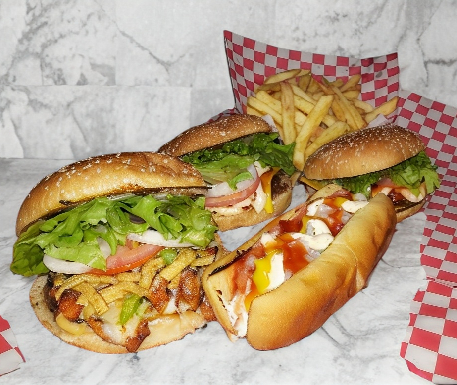 Hamburguesa pastor, clásica, infantil y dogo especial y orden de papas a la francesa.