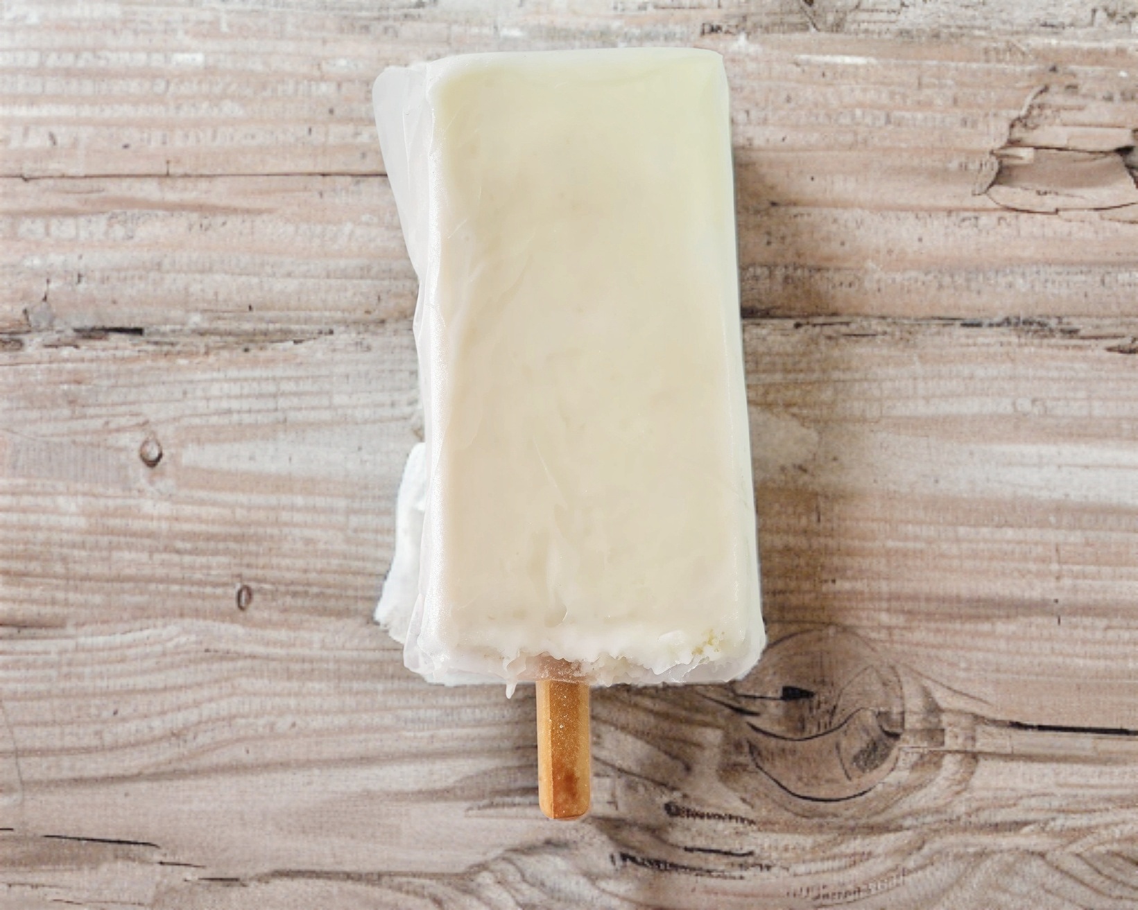 Paleta grande de vainilla cubierta de chocolate y coco horneado