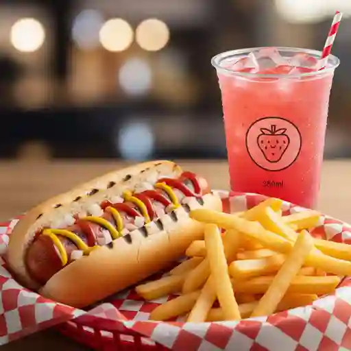 Hot dog, papas a la francesa y agua fresca 350 ml.