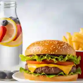 Combo con hamburguesa sencilla, papas a la francesa y agua fresca 350 ml.