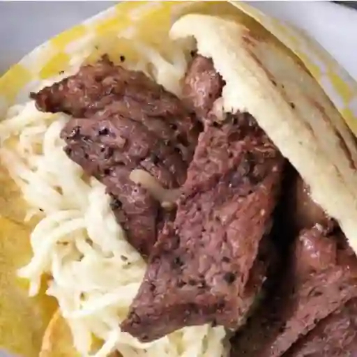 Arepa, carne de res, pollo y arrachera.