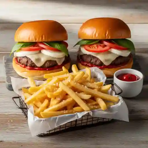 Combo con 2 hamburguesas Margarita y papas a la francesa.