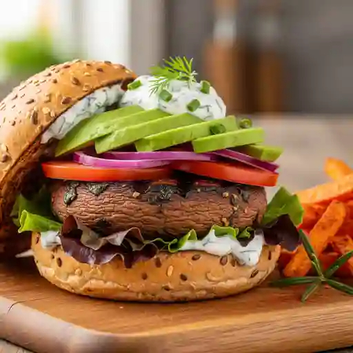 Hamburguesa con proteína a elegir, lechuga, jitomate, cebolla y champiñones, sin pan.